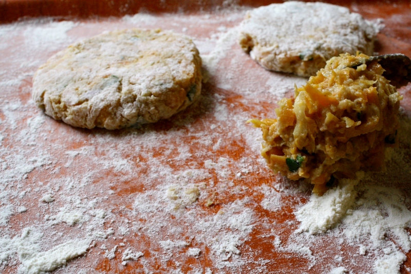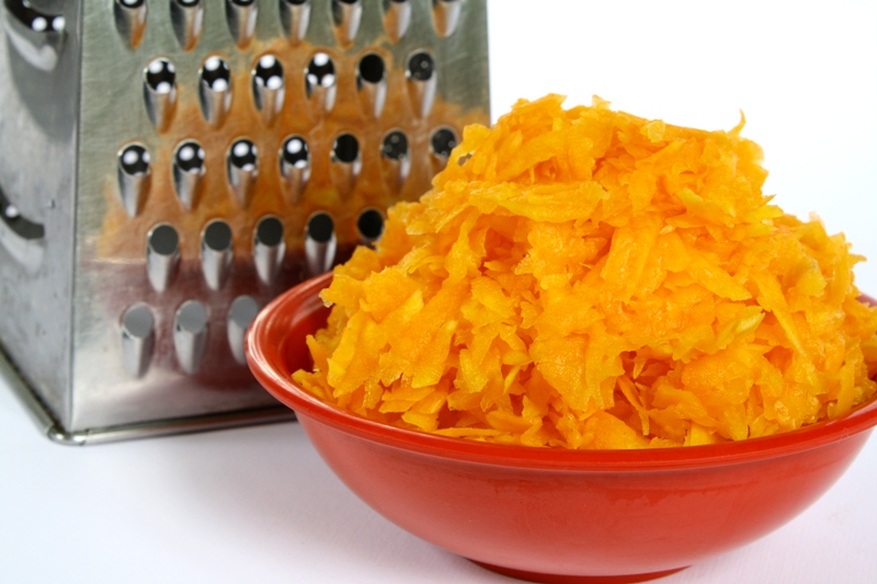 Натереть на крупной терке тыкву, посолить и выложить стекать жидкость на дуршлак периодически отжимая руками.
