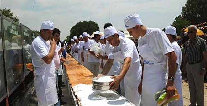 - Город Серес в котором я живу считается родиной "бугацы" (греческий слоеный пирог). Он даже попал в книгу рекордов Гиннеса, так как здесь в 2008 году была изготовлена самая большая бугаца в мире! Величина пирога была 20 метров в длину, 60см в ширину и весом в182кг.
